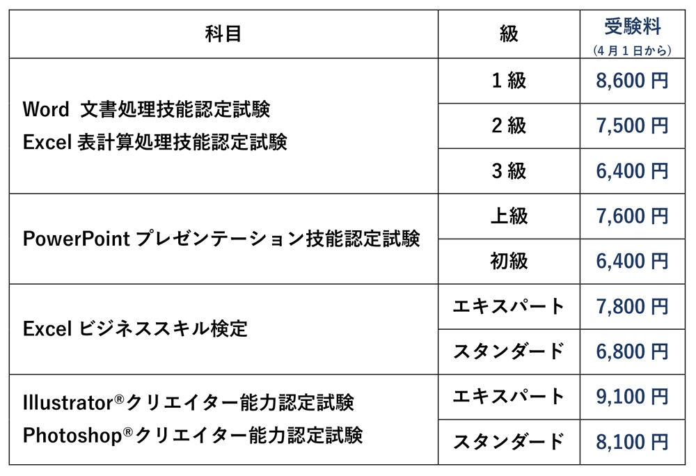 2026年4月1日より受験料が改定となります。